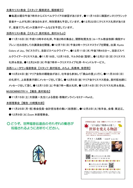教会役員・会計担当者の集い 2025年11月24日(月、祝)