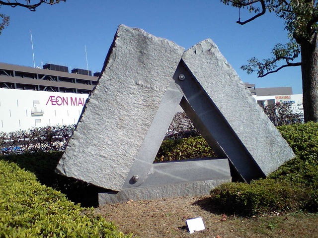 来た道を引き返したのですが、近江大橋の手前に現代彫刻がありました。車で通るとほとんど見過ごしてしまっているのですが、こうして自転車で通るとじっくりと見ることができます。1980年代に琵琶湖現代彫刻展というのが開かれましたが、その時からのものでしょうか。近くで見ると題名に「三位一体」とありました。三位一体は、父、御子、御霊の神さまが一つの神さまであると信じるキリスト教の中心的教理です。こんなところでこのような言葉に出会うとは、作者の意図とは離れているかも知れませんが、何やら嬉しくなりました。