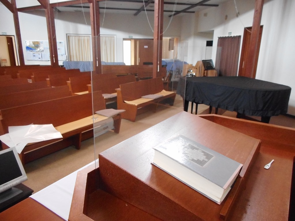 さっそく、礼拝堂の講壇に設置してみました。