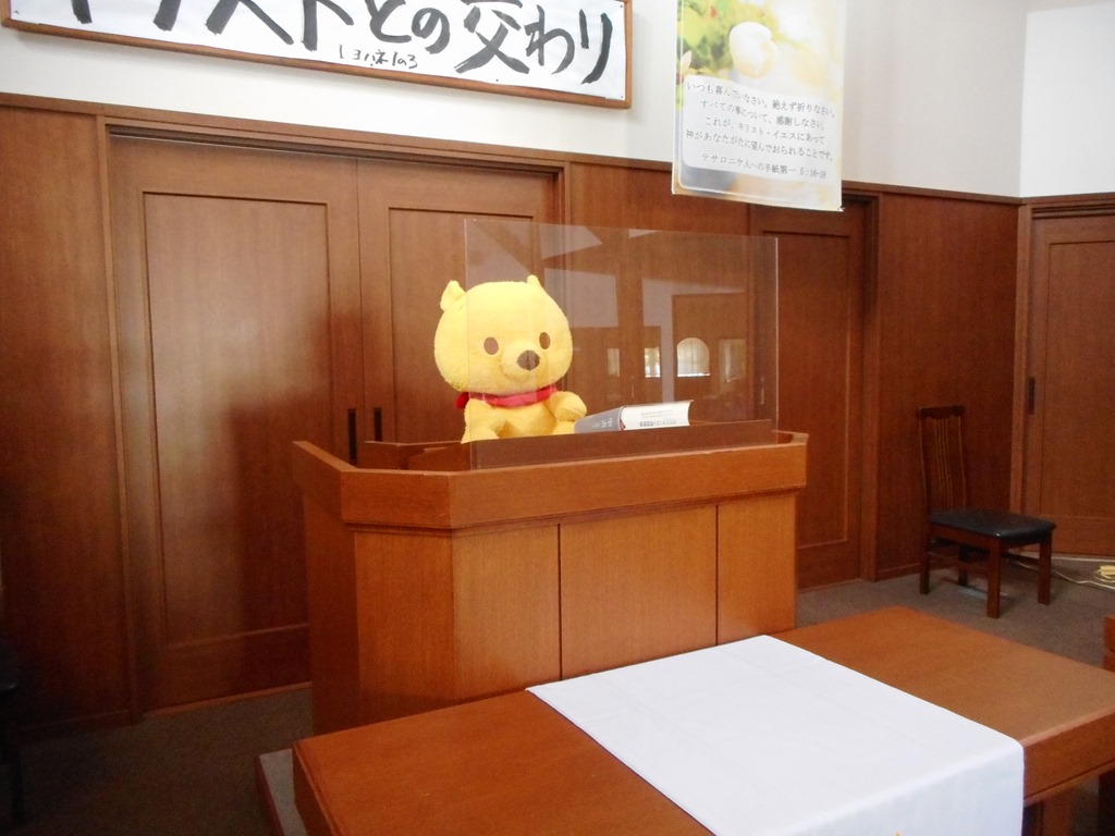 6月9日(火)のオンラインでの牧師会で、講壇からの説教中マスクをするかしないかということで、それぞれに現状が報告されました。会衆に向かって話す場合、他の対話に比べてより飛沫が多く、その飛距離も大きくなると考えられます。それでマスクをして説教される先生がたが多かったのですが、私自身は、どうもマスクをしていると酸欠状態になって、話せなくなる感じなのです。マスクをしているという先生の報告が多かったので、発言をちょっと控えることになりました。