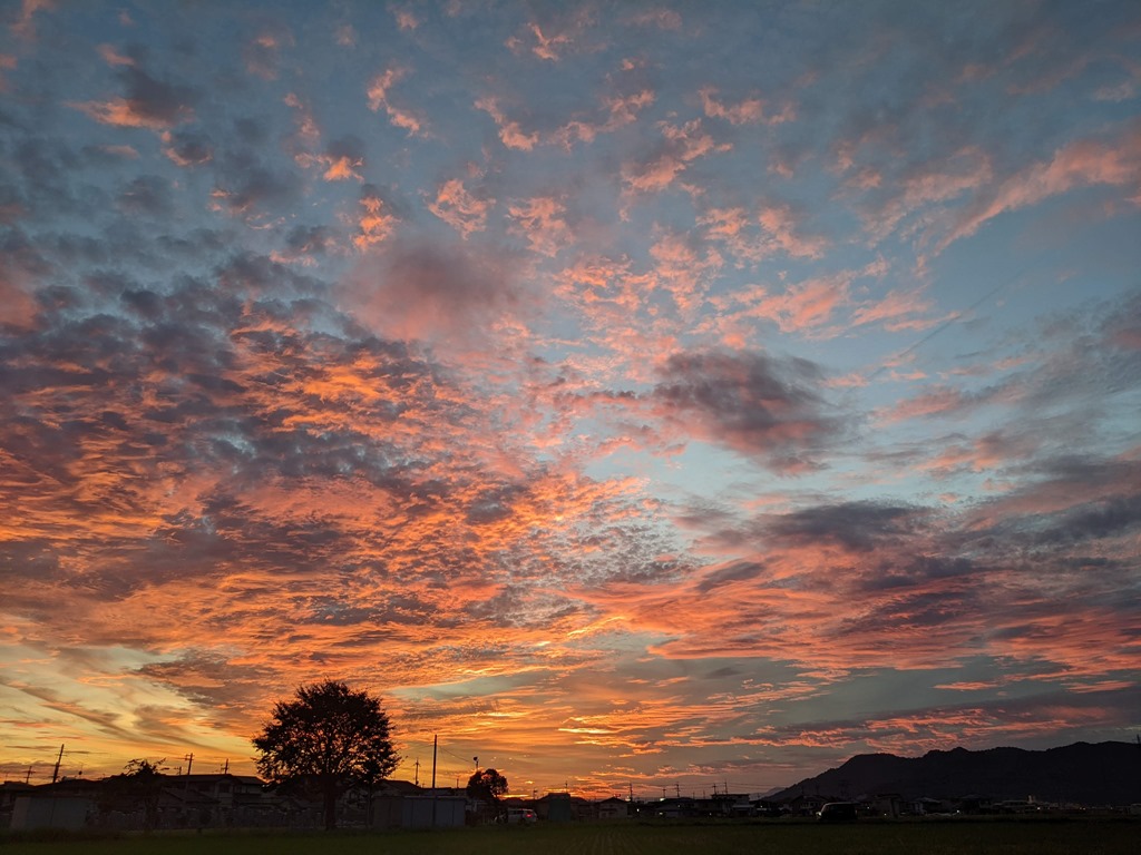 まだまだ真夏のような気温ですが、日が短くなりました。今日はお彼岸の入り。夕焼け空。