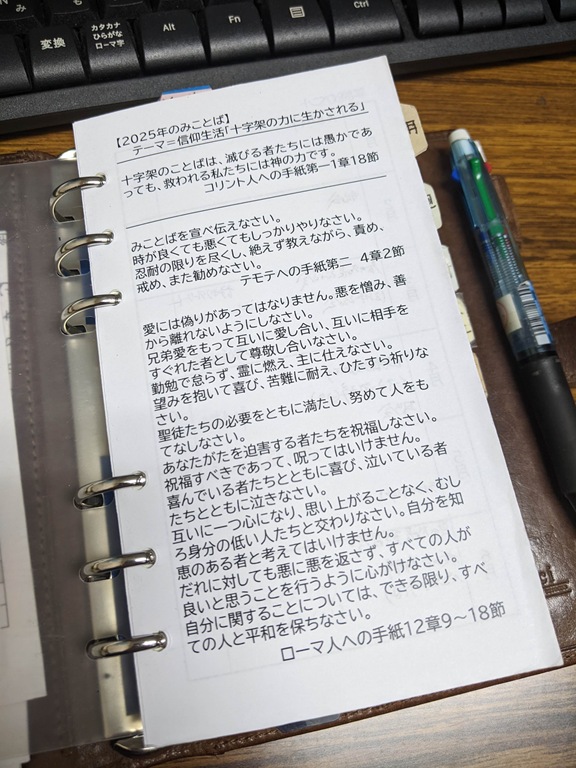 ちなみに今朝のこの聖句は私の手帳の一番最初のページに書いていることばです。