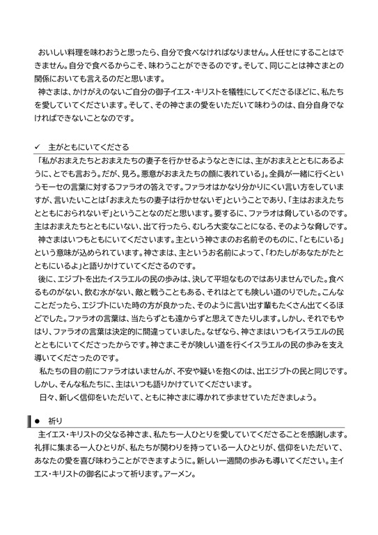私たちの目の前にファラオはいませんが、不安や疑いを抱くのは、出エジプトの民と同じです。しかし、そんな私たちに、主はいつも語りかけていてくださいます。