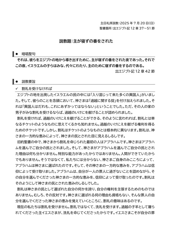 主日礼拝説教:2025年7月20日(日)