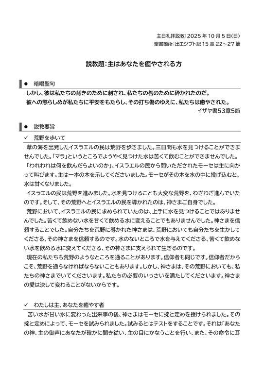 主日礼拝説教:2025年10月5日(日)