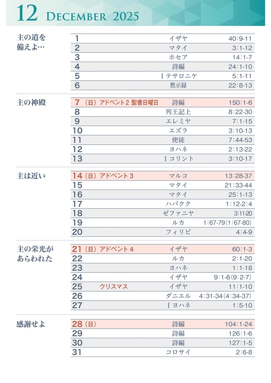 ※協会訳系の節によるものですので、新改訳でお読みの場合ずれていることがあります。読んでいてピンとこなければ協会訳系の聖書(共同訳2018,新共同訳、口語訳)で確認してみてください。