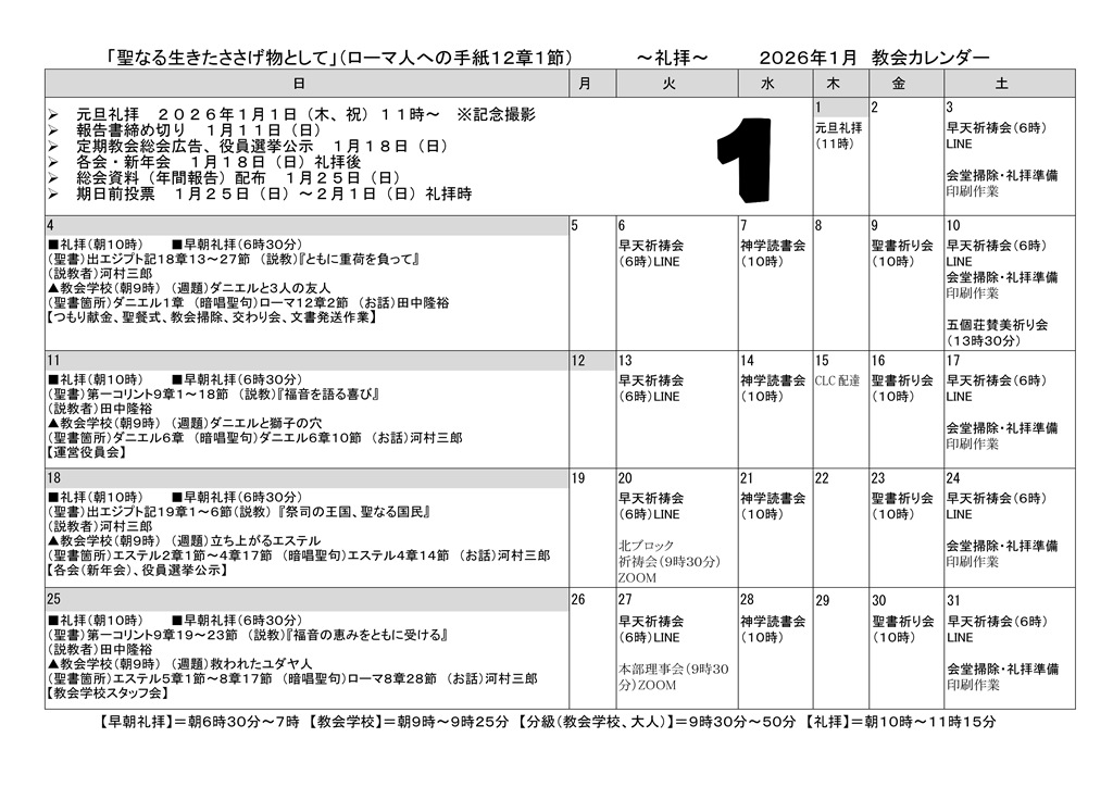 教会だより・カレンダー 2026年1月号