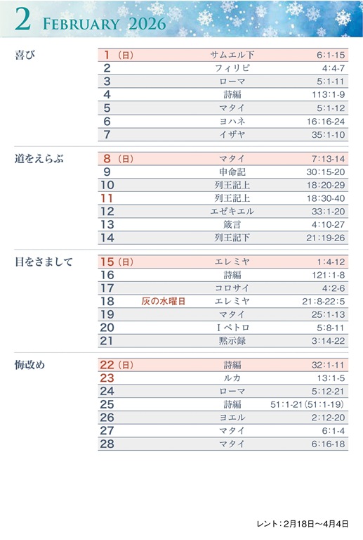 ※協会訳系の節によるものですので、新改訳でお読みの場合ずれていることがあります。読んでいてピンとこなければ協会訳系の聖書(共同訳2018,新共同訳、口語訳)で確認してみてください。
