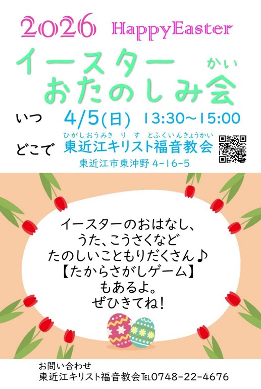 • 教会学校イースターお楽しみ会 2026年4月5日(日)13時30分
