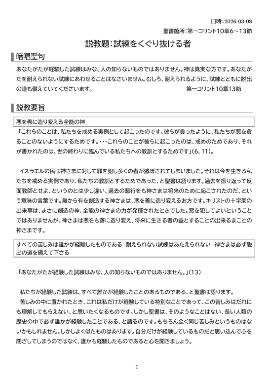 - 説教題:試練をくぐり抜ける者