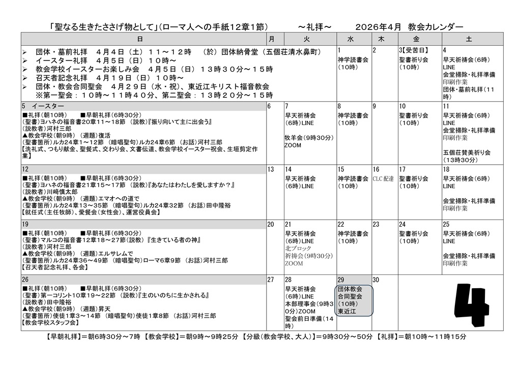 教会だより・カレンダー 2026年4月号